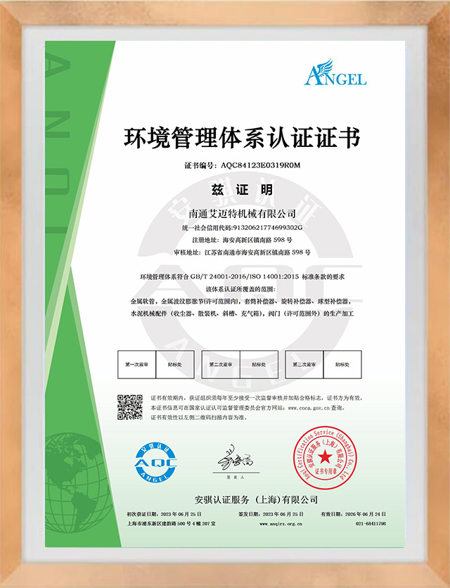 環(huán)境管理體系認(rèn)證證書